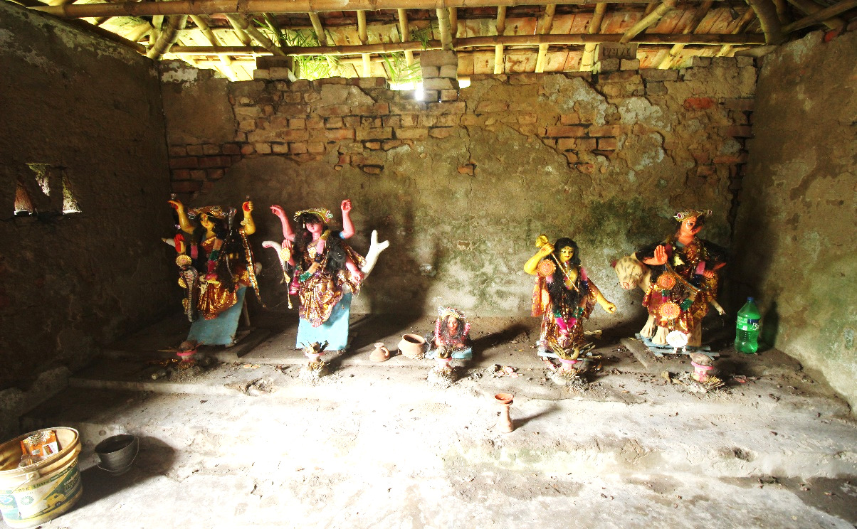 For more than twenty years now, he has been earnestly performing the rituals of Makal ṭhākur near his shrimp ponds. He performs them once in the middle of Māgh with the help of a village priest. During the ritual completion, he introduces himself as the deity’s son, proclaims his life of hardship, and reminds the ṭhākur that his entire family’s wellbeing depends on the successfulness of cultivation. Accordingly, Makal ṭhākur has graciously acceded to his homage ever since. Unlike many other Hindu deities’ material representations, the image of the ṭhākur does not undergo visarjan (water immersion). So, every Śukrabār (Friday) this adherent offers some bātāsā, a sweet made from milk, cardamom, sugar, and clarified butter, to Makal inside his thān. The repetitive offering of sweets constantly reminds the deity to be kind to him and his family. He was the first person to introduce this tradition to his family members.